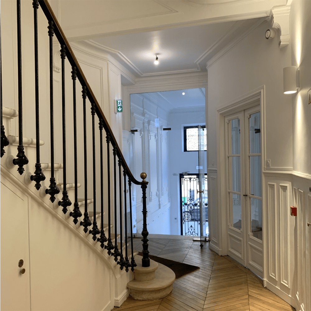 Remise à neuf à tous les niveaux, refonte totale de ses équipements techniques dans le but de proposer un lieu adapté et confortable à ses futurs locataires, les pièces nobles sont rénovées en salles de réunion et les étages en espaces de travail. Le sous-sol, quant à lui, entièrement restructuré, propose une salle de réunion, une kitchenette et une salle détente.